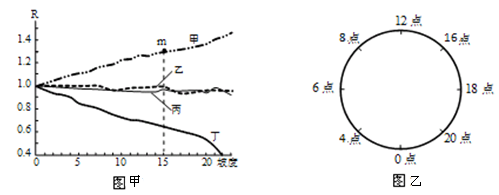 1、单选题 图甲表示北半球冬至日某纬度(32°N)不同坡向R值随坡度变化(纵坐标R表示山地东西南北四个坡面实际得到的太阳辐射与当地水平面上太阳辐射之比)。完成各题。