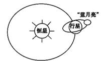 4、单选题 右图中的“蓝月亮”为科学家用计算机模拟出的银河系中一个可能孕育生命的外星天体,据推测它本身不发光,但该天体上光照良好。据此回答下题。