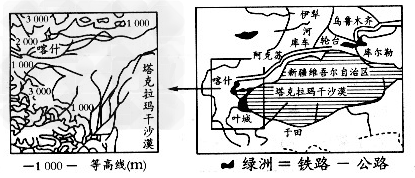 ?(1)结合图示地区的地形特征,简要分析绿洲分布的位置和原因。