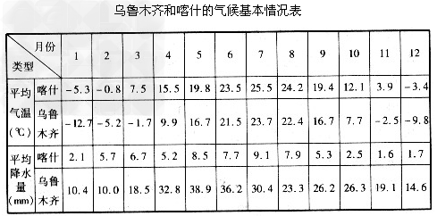 (3)结合表格,分析乌鲁木齐和喀什气候的相同点和不同点,并分析原因。