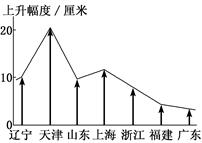 3、单选题  该图为近30年来我国沿海地区海平面总体上升幅度示意图。读图回答问题。