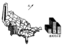 1、图中甲地区农业发展历史上用水量曾较少,现在却是该国农业用水量最大的区域,其主要原因是农业地域类型发生了变化,则目前该地主要农产品是