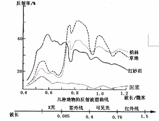1.下图中,在红外线波段反射率最高的是2.通过这次遥感调查,可以了解到哪些信息