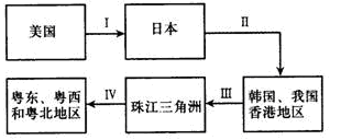 2、单选题 图为某产业转移过程示意图,据此完成下题。