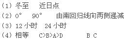 (4)ABCD四点中,自转角速度?,自转线速度?,有阳光直射现象的有?