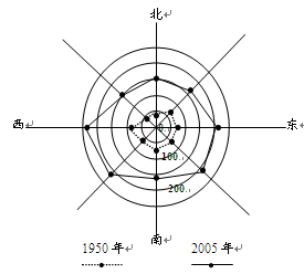 小题1:1950年和2005年,有关该区域各坡向侵蚀沟密度的说法,正确的是