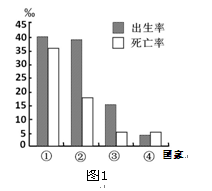 3、单选题 读图1“四个国家人口出生率和死亡率柱状图”,完成下题。