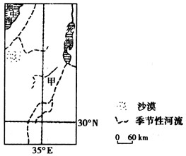 3、单选题  图中所示区域内自南向北年降水量由约200mm增至500mm左右,沙漠地区年降水量仅50mm左右。据此完成1~2题。