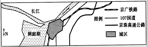 4、单选题  读“湘北某城市略图”,回答1~4题。