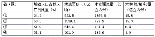 我国四省(区)人口及部分自然资源统计数据