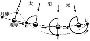 小题1:当日全食发生时,月球在下图中的位置是