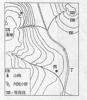B.乙处的地形坡度小于丙处