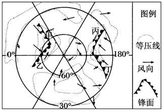 2、单选题 下图是“某日极地附近风向示意图”。据此回答下列小题。