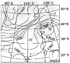 3、单选题 读亚洲局部区域某时刻海平面等压线分布图(单位:hPa)(如下图),回答下列各题。