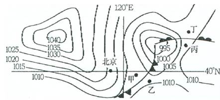 1、单选题 2012年3月30日受冷空气活动影响,我国北方地区出现了沙尘天气。下图是某时刻地面气压(百帕)分布图。读图完成1~2题。