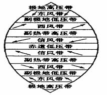 点评:本题难度较小,学生熟练掌握全球气压带、风带分布图即可轻松作答。附全球气压带、风带分布图: