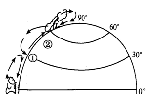 4、单选题 45°纬线穿越右图所示地区,a为经线,某大陆L地的观测者,于3月21日10时(L地地方时)看到太阳从山顶M升起。据此回答下面各小题。