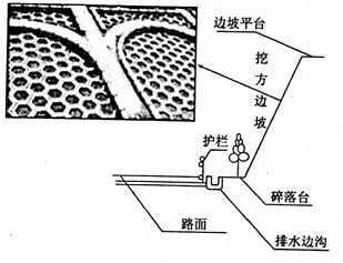 2、综合题 ( 10 分)【自然灾害与防治】在山区公路和铁路道旁经常可以看到如下图所示具有蜂巢结构的水泥防护工程建设。