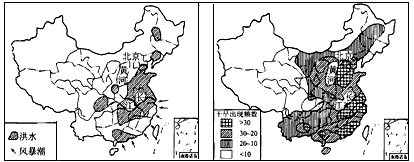 ( l )写出两种图中防护工程所能防御的自然灾害。( 4 分)