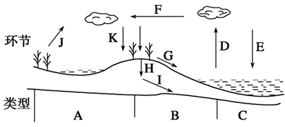2、综合题  读“水循环类型及主要环节”图,完成下题: