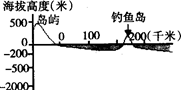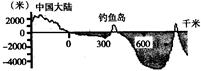 材料二:左图为我国大陆至钓鱼岛的地形剖面图,右图为我国台湾岛至钓鱼岛的地形剖面图。