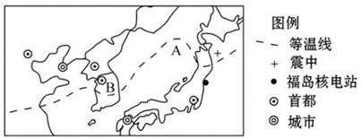 ⑵专家指出,本次日本核危机对中国影响较小,请从地理角度解释原因。(4分)