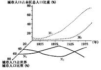 小题2:城市化水平的高低主要看城市人口占本区总人口比重,即分析图中M1和M2曲线的变化。由于M1一直大于M2,故可确定M2代表欠发达地区。图中显示M2从1925年前后城市化水平开始快速提升。故选C。