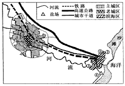 4、单选题 下图为我国东部沿海地区某城市的示意图。读图,回答1—2题。