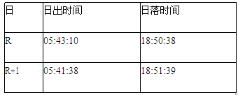 4、单选题  某同学查询到北京(116°E,40°N) Y 月相邻两天(R 日和 R+1 日)的日出和日落时 间(北京时间),如表 所示,据此完成 下列各 题。