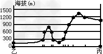 (3)在下图所示框中,绘制乙、丙两城市之间的地形剖面图。