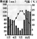 材料二? A图为岛屿中戊城市所在地区的气候资料图,B图为岛屿中丁城市所在地区的气候资料图。