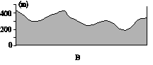 小题1:画等高线剖面图的关键是要注意地形部位中的:山脊、山谷、鞍部、山峰等;该图的甲至乙先是下降,到闭合的300等高线为山丘,地势上升,翻过山脊再降低,到200等高线后又升高,同时要注意几个关键点的海拔高度:甲处海拔高于400,中间翻越的山丘脊线海拔大于300,小于400,终点乙海拔大于300,小于400。C符合。