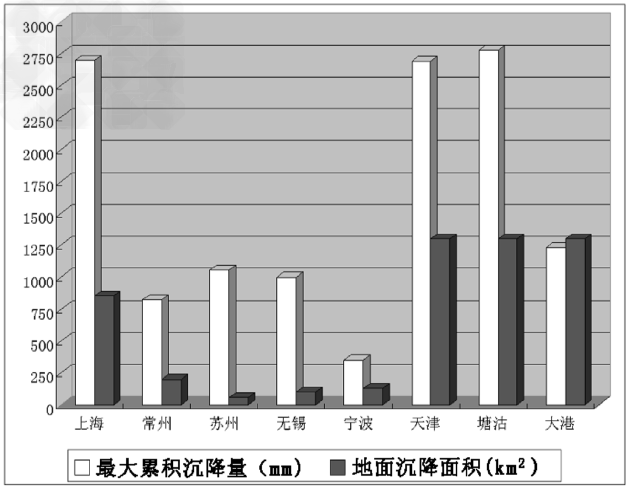 4、单选题 下图是我国部分沿海城市地面沉降的统计示意图,读图完成1~2题。