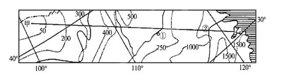 小题1:根据图示可知,该区域为我国。我国年降水量的空间分布规律是由东南向西北逐渐减少。