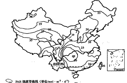 1、如仅考虑光合有效辐射,我国农业生产潜力最大的地区是