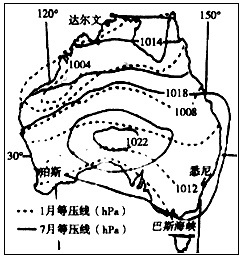 1、据图分析澳大利亚大陆7月最高气压与1月最低气压的最大差值为