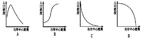 小题1:能正确反应Ⅰ阶段城市人口密度与距离城市中心远近两者关系的是:
