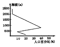 (1)图中所示地区人口所占百分比最多的海拔高度大约在