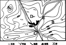 (2)在D、E、C、B三处中最适于修筑水坝的是?