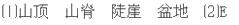 (1)写出图中字母所示处地形的名称: