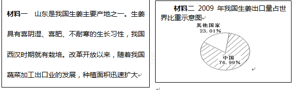 (2)受市场因素的影响,我国每年生姜的种植面积波动较大。我国生姜在国际市场上有较强的竞争力,请分析原因。(10分)