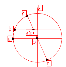 上图中,COP为晨昏线,DB为任意的纬线,EO为赤道。很明显看到A(B)在侧视图中是重合的,因“A、B分别位于晨线和昏线上”,若COP右侧为夜半球,则此图中COP与纬线的交点应为B,COP为昏线;若COP右侧为昼半球,则此图中COP与纬线的交点应为A,COP为晨线。不管哪种情况,A(B)都不会与O重合。依据晨昏线特点:晨线(或昏线)与赤道交点所在经线的地方时为6时(或18时),则A(B)一定不会是6时或18时,故A选项错误。因在题目的图中A在B的西侧,则此时侧视图中我们应该看到B,即COP为昏线,则太阳直射点应在南半球,那么此时B点处的太阳方位为西南,则树影朝东北,故B选项错误。因“两孤所在的平面夹角为70°”,即侧视图中∠CBD=70°,依据纬线相互平行,则∠COE=70°,而根据纬线纬度定义可知,C的纬度为70°N,故C选项正确。因“C、D分别为两弧的中点且在同一条经线上”,则C为晨昏线与纬线的切点,依据太阳直射纬线的纬度与切点所在纬线的纬度互余,结合前面的判断,则太阳直射20°S。因为D点在北半球,则D点与太阳直射纬度的纬度差≥20°,再依据正午太阳高度计算公式H=90°-纬度差,则D点的正午太阳高度≤70°,故D选项错误。