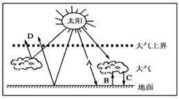 5、单选题  下图为大气受热过程示意图。完成小题。