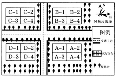 2、单选题 下图是深圳市(22.5°N,114°E)某楼盘平面图。在面积、户型、楼层(5层以上)等都相同的情况下,从采光、通风、噪声等方面考虑,房价最高的可能是