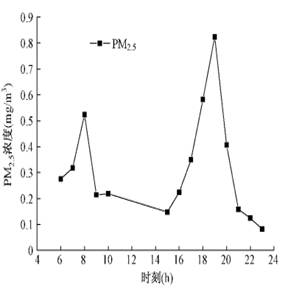 小题1:读图可知PM2.5出现峰值的时间分别是8点和19点,这两个时间是早晚上下班的高峰时间,这段时间在公路上行驶的汽车多,汽车排放的废弃物多,导致PM2.5出现峰值。