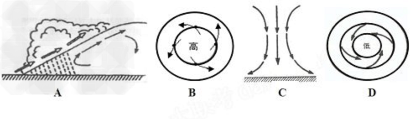 3、单选题 下图为等压线分布示意图,其中表示南半球风向的是( )