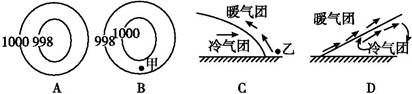 本题解析:有天气系统示意图可知:A为气旋,为低压,会带来降水现象。B为高压,反气旋,在其控制下,我国长江流域会有伏旱天气。C为冷锋,冷锋过境时,常出现刮风、阴天、降水、降温等天气现象。D为暖锋,暖锋过境时,常出现阴天、降雨等天气现象。