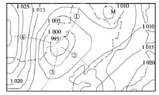 3、单选题 读某区域等压线分布图(单位:hpa),回答下列问题。