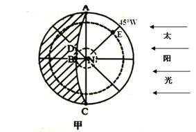 1、综合题 (16分)图14为以北极点为中心的地球光照图,阴影部分表示黑夜,回答下列