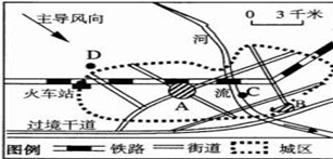 (1)图中A是该市的商业中心,其布局原则是 (?)?;B为该市新建的专业性商品交易市场,其布局原则是? (? ) 。